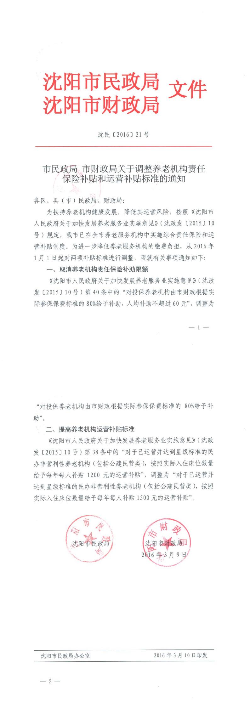 乐游棋牌 市财政局关于调整养老机构责任保险补贴和运营补贴标准的通知(沈民〔2016〕21号)