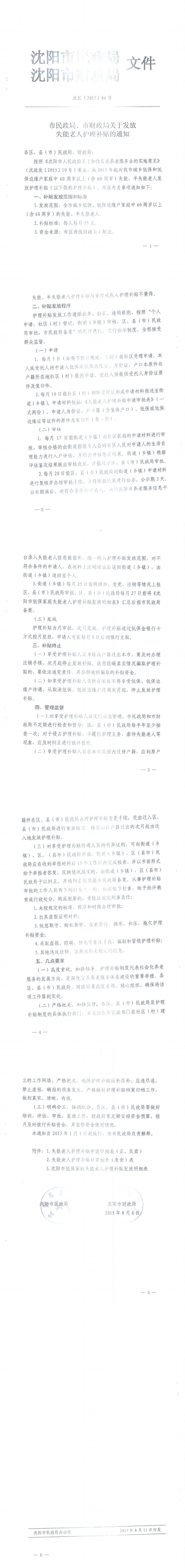 乐游棋牌 市财政局关于发放失能老人护理补贴的通知(沈民〔2015〕80号)